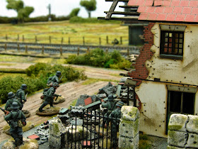 I found this a tough nut to crack for the Germans because the terrain was very wooded apart from the main road and the village itself, so visibility in the woods was down to 6 inches and the Germans were unable to make use of their superior firepower.