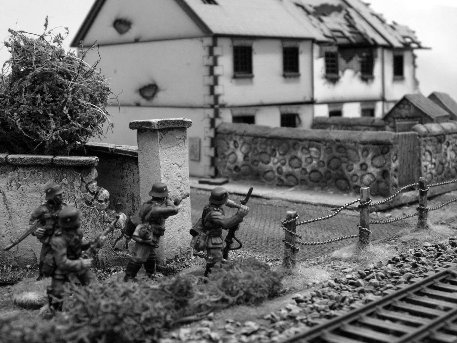 The objective for the Germans was to take the Russian jump off point at the far end of the table located in the grounds of the large house.